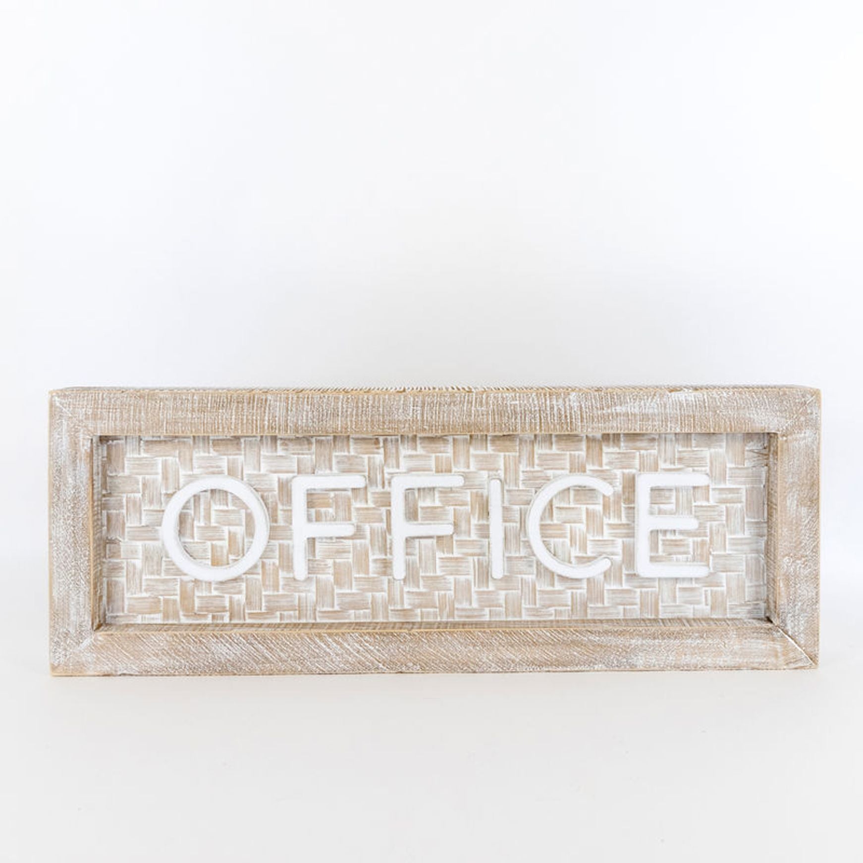 Office Bamboo Wood Framed Sign - White/Brown/Natural