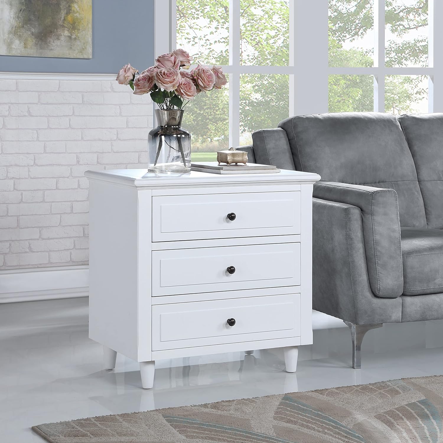 3-Drawer Nightstand Storage Wood Cabinet