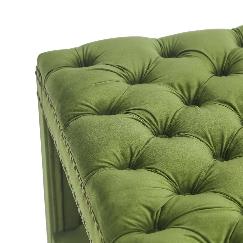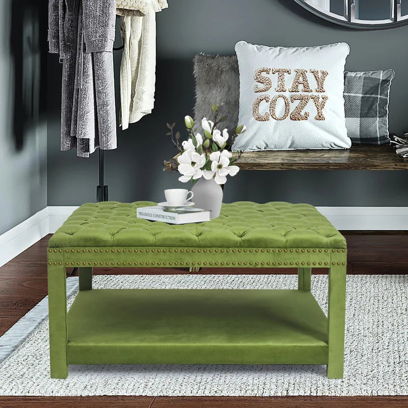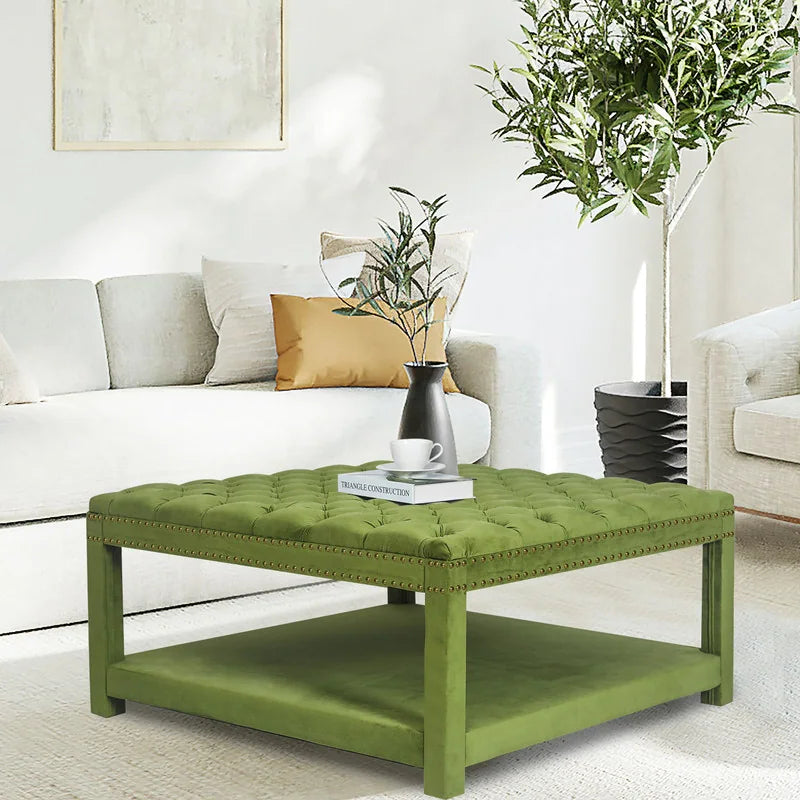 Adeco Large Square Velvet Ottoman Coffee Table Footstool Footrest-GREEN