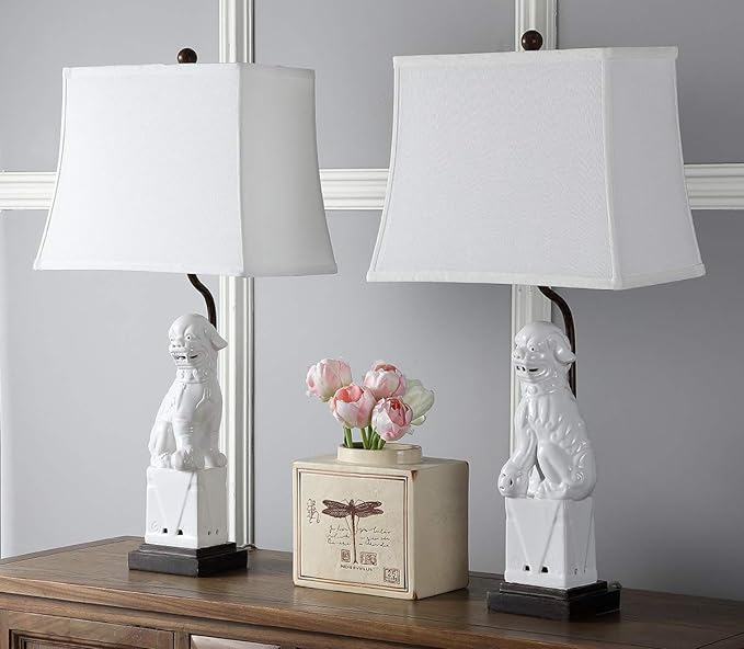 SAFAVIEH Lighting 28-inch White Foo Dog Table Lamp (Set of 2) - 14"x9"x28.5"