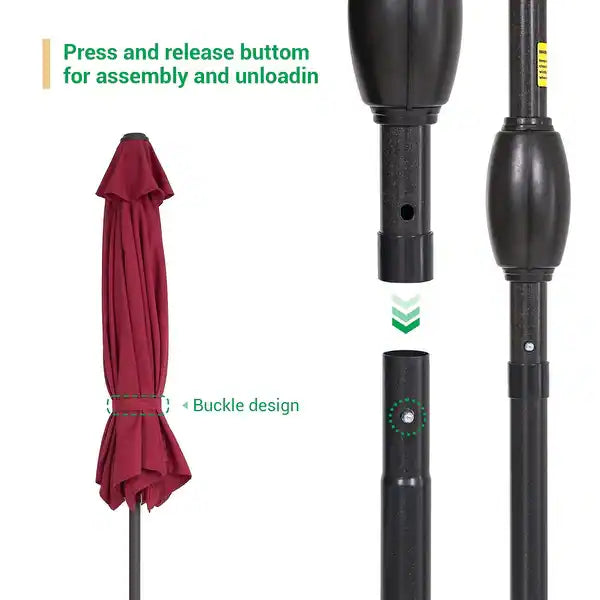 A powder-coated steel umbrella pole and eight ribs are the protection for the durability of this outdoor umbrella. The thick polyester fabric will meticulously protect your skin for a cool time outdoors. Instead of getting a new patio umbrella every year, simply buy a high-quality umbrella that will last for many years. The 9 feet large canopy is enough to shade a dining table and 4 chairs.When the family chats, relaxes and even naps in the wide shade, and your children can enjoy playing in the hot sun, you must feel how comforting it is to have this umbrella.